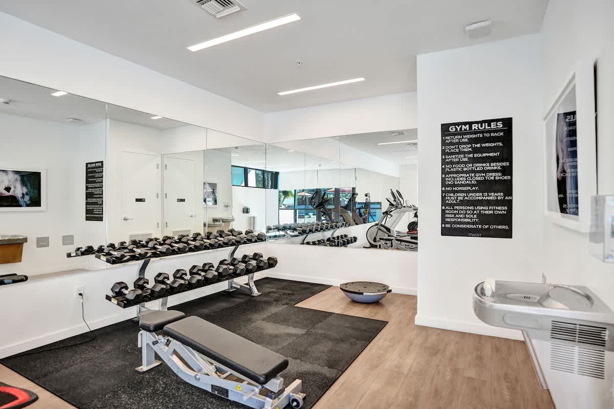 - Fitness center and shared lounge spaces