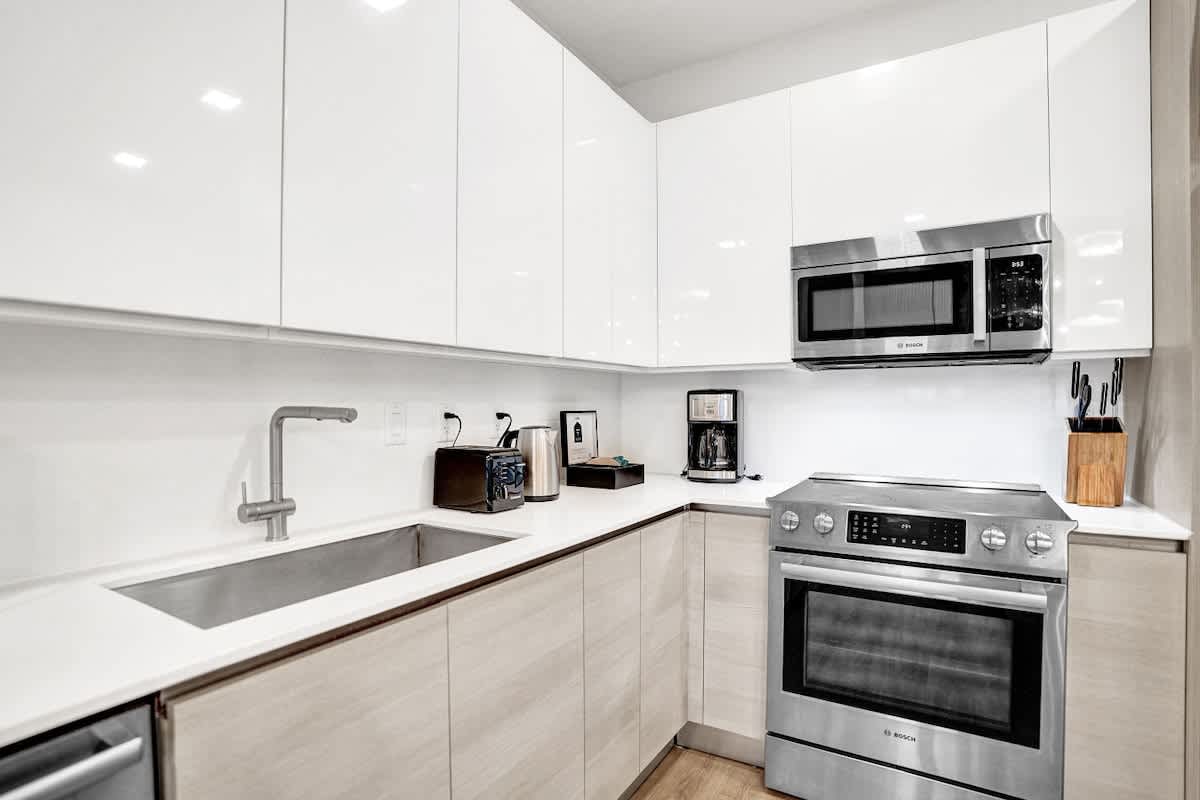 - Fully equipped kitchen with stainless steel appliances and modern finishes