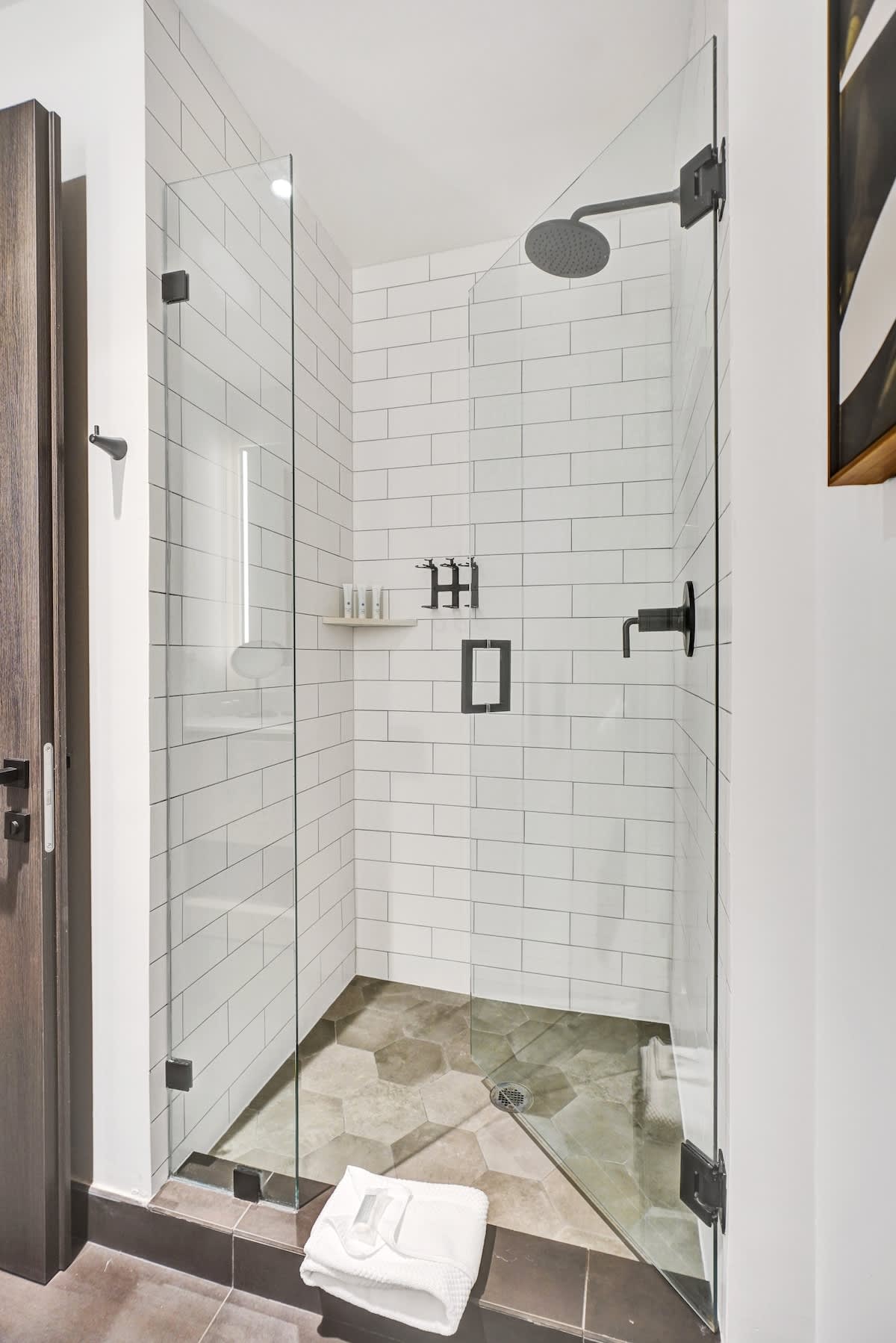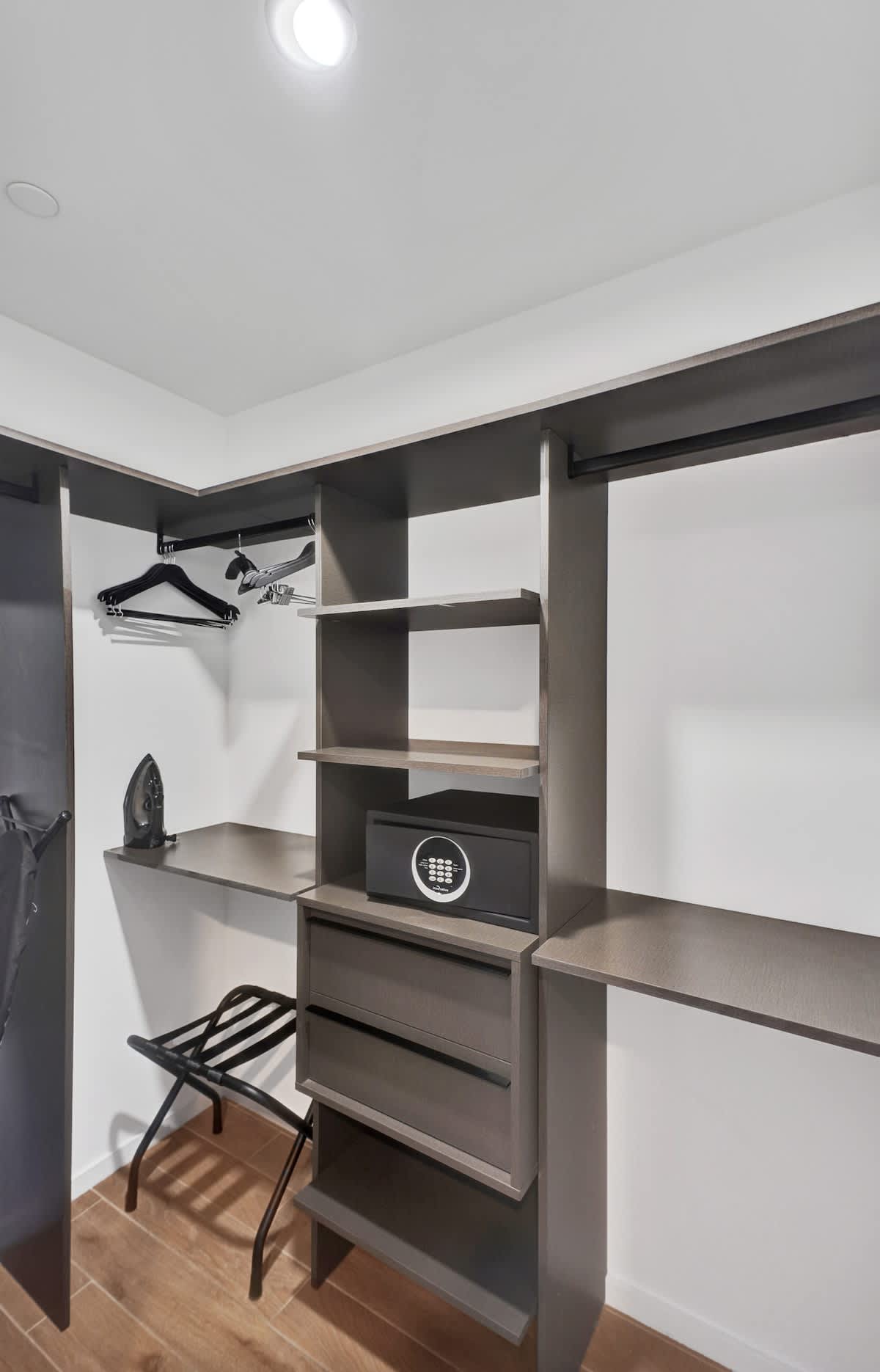 Inside, the space is thoughtfully equipped for both rest and routine: