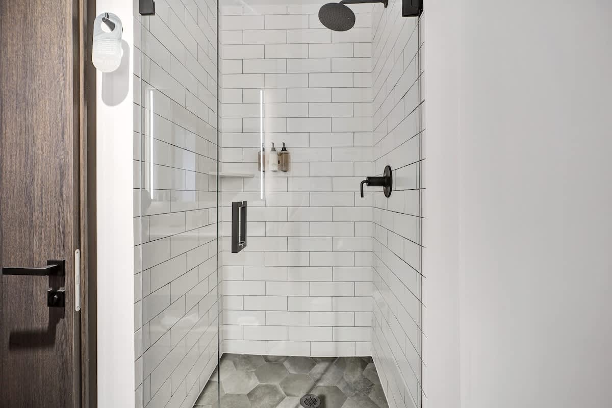 - A plush queen bed invites deep, restful sleep with hotel-quality linens
