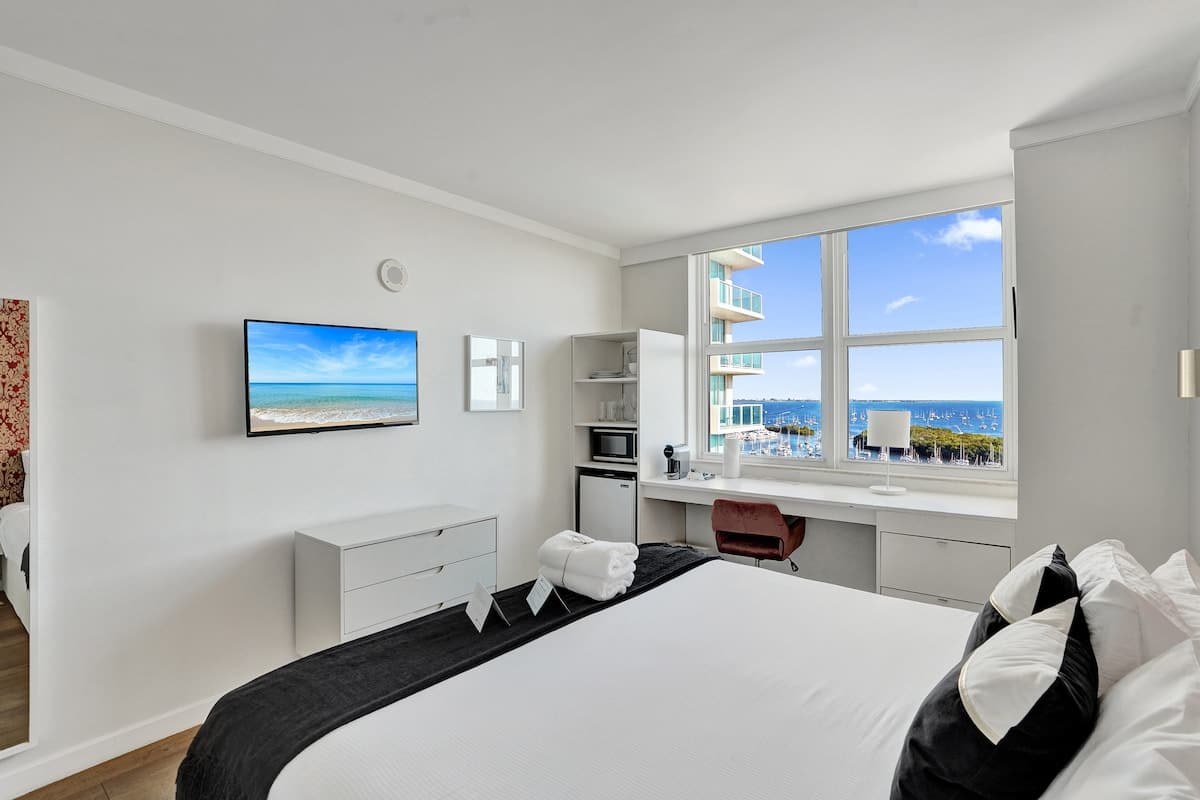 Enjoy comfort and convenience in this 14th-floor studio at Arya Hotel. Featuring 1 queen bed, a full bathroom, desk, Smart TV, and fast WiFi—perfect for relaxing or working remotely. Take in skyline views and walk to Coconut Grove’s best dining, shopping, and waterfront spots. Includes one free designated parking space. Ideal for couples, friends, or business travelers looking for a stylish stay in the heart of Miami. Other Details to Note” section for important check-in and parking information