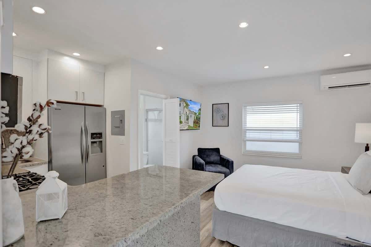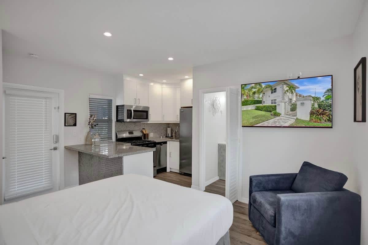 Welcome to your cozy waterfront studio on Hendricks Isle — perfectly positioned on the Intracoastal Waterway and just minutes from everything Fort Lauderdale is known for. This thoughtfully designed studio is ideal for couples, solo travelers, or business guests looking for comfort, convenience, and a great location. Enjoy water views, a full kitchen, fast Wi-Fi, and a Smart TV, all in a quiet residential setting.