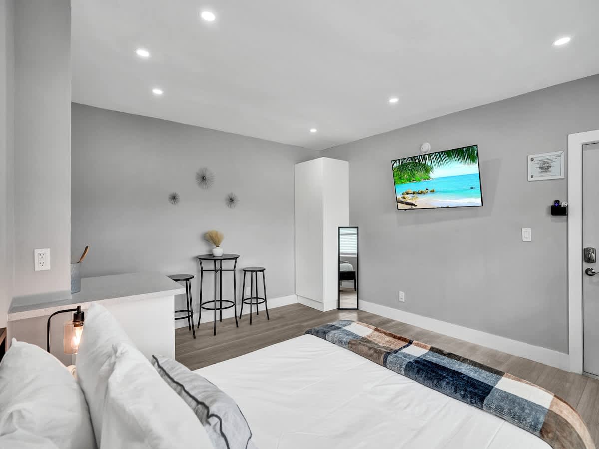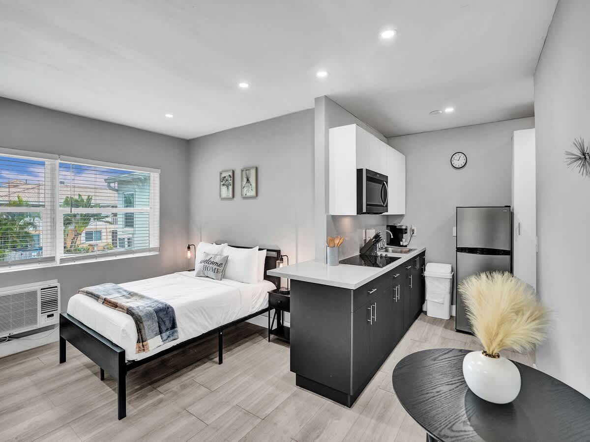 Welcome to your perfect getaway near Pompano Beach! Our charming, second floor studio vacation rental offers the ideal combination of comfort, convenience, and relaxation for your coastal escape. Situated just a stone’s throw away from the stunning Pompano Beach, this cozy apartment is located in a tranquil and friendly neighborhood. Plus, the local area boasts a range of shops, restaurants, and attractions to explore.