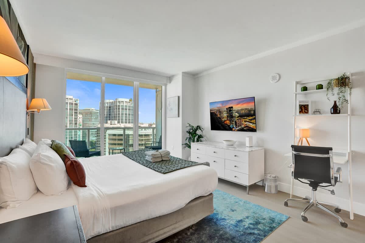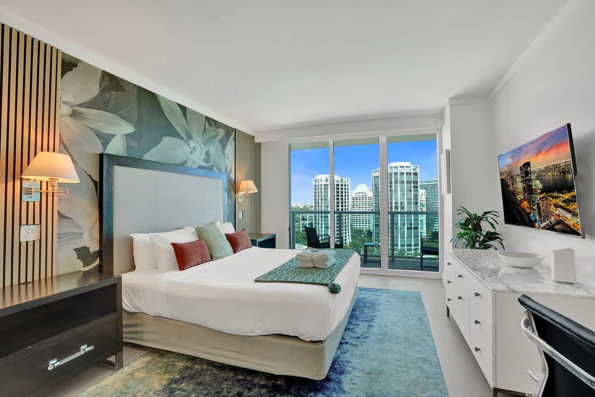 Enjoy a relaxing stay in this modern 20th-floor studio at The Arya, featuring beautiful bay and city views. Perfectly situated in Coconut Grove, this inviting space combines comfort, convenience, and access to top amenities—ideal for both leisure and business travelers.