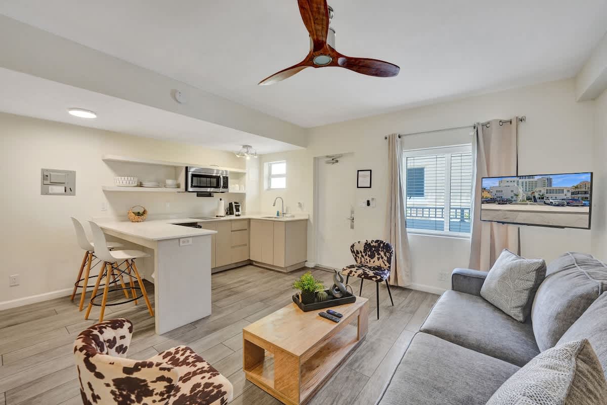 Enjoy South Florida’s sunshine and clear waters! This stylish private apartment is steps from the beach and close to Las Olas Blvd, FLL airport, highways, great restaurants, nightlife, shopping, and cafés. The perfect central spot for a relaxing and convenient Fort Lauderdale stay.