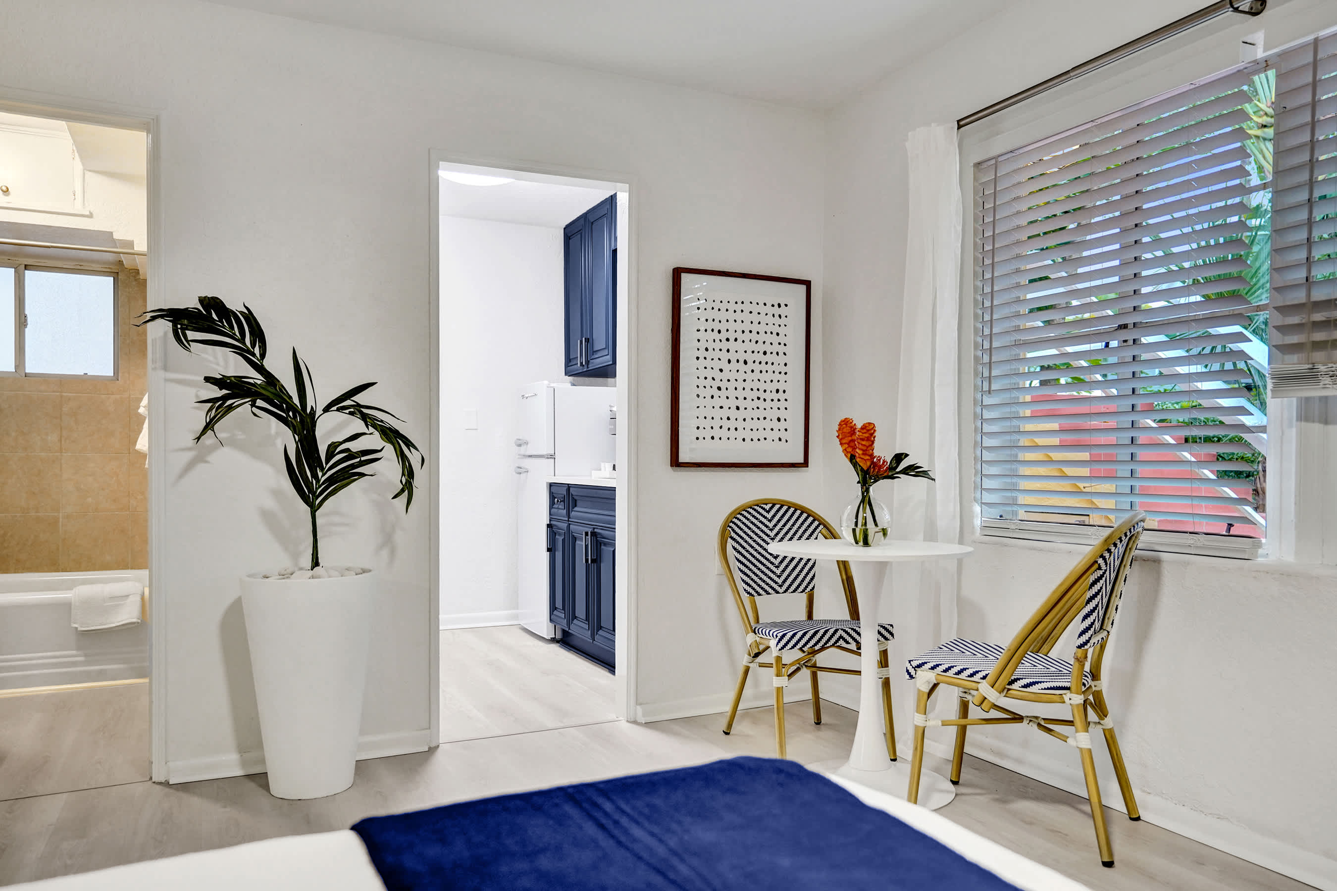 Welcome to a newly renovated retreat in the heart of Lake Worth Beach, thoughtfully designed for comfort and ease. This stylish unit features modern finishes, brand-new furnishings, and everything needed for a relaxed stay. Enjoy a queen bed, kitchenette, fast Wi-Fi, a Smart TV, and seamless self check-in. Located minutes from the beach, dining, and local favorites. Please read the Additional Notes section below for important details about parking, shared spaces, and check-in requirements.