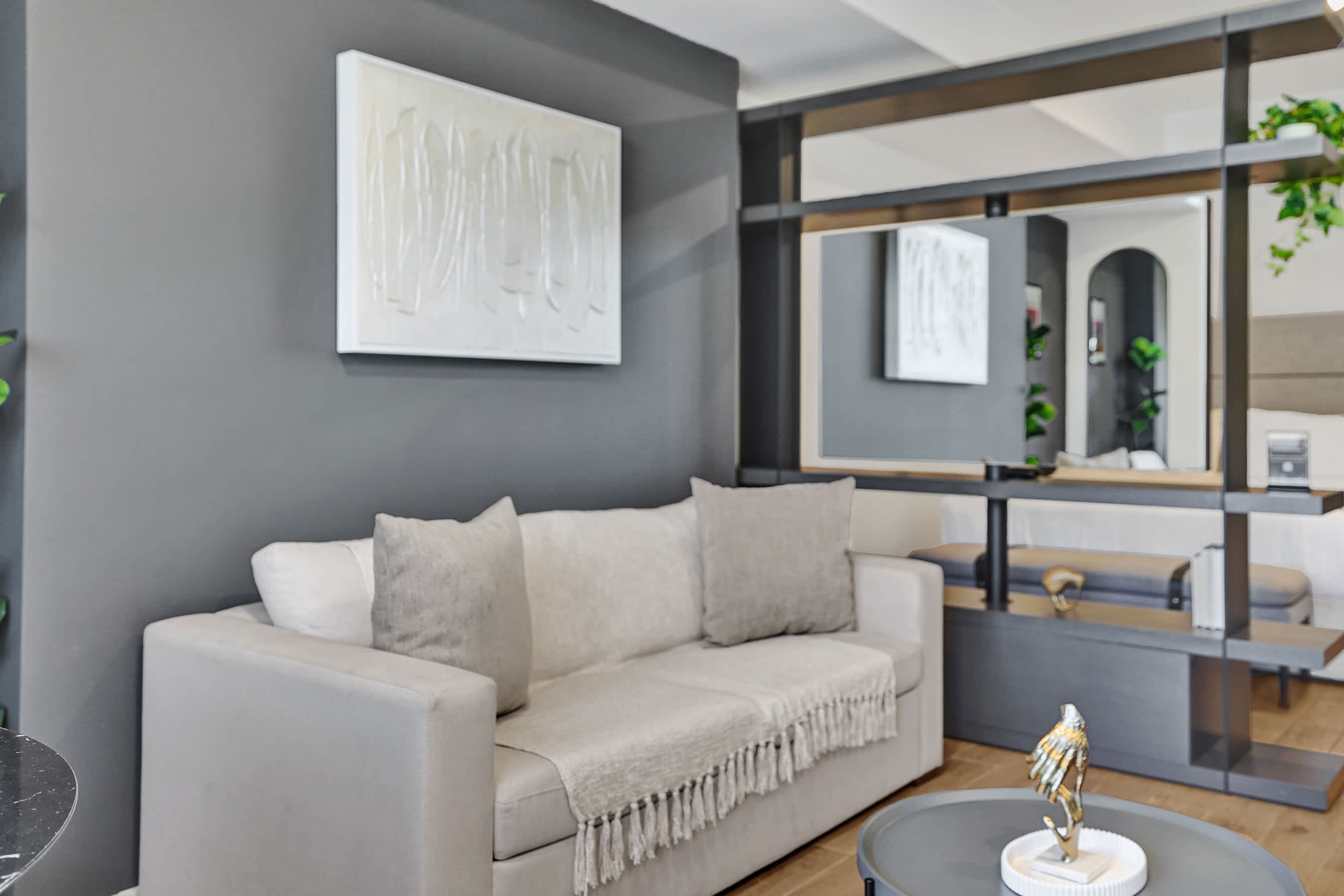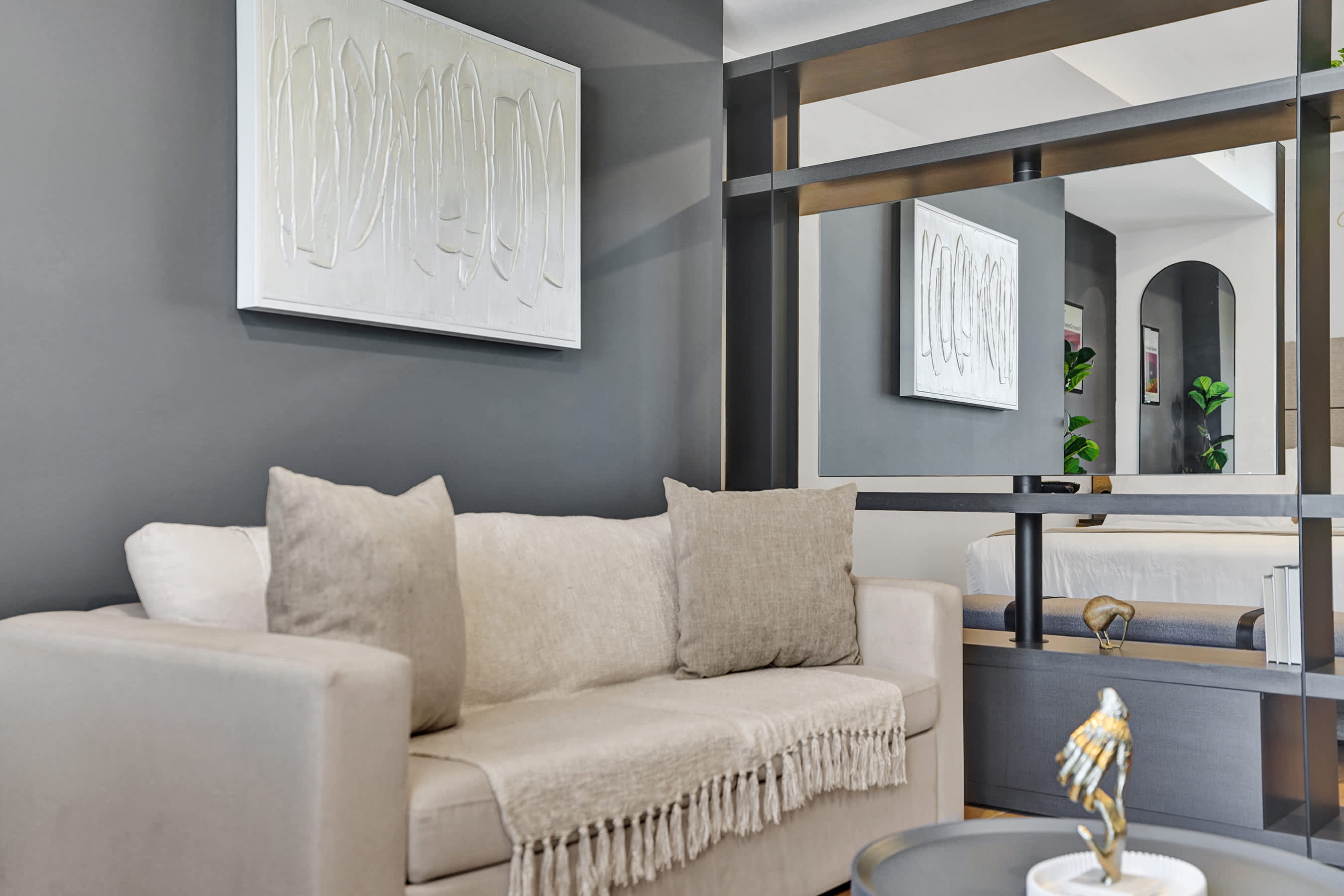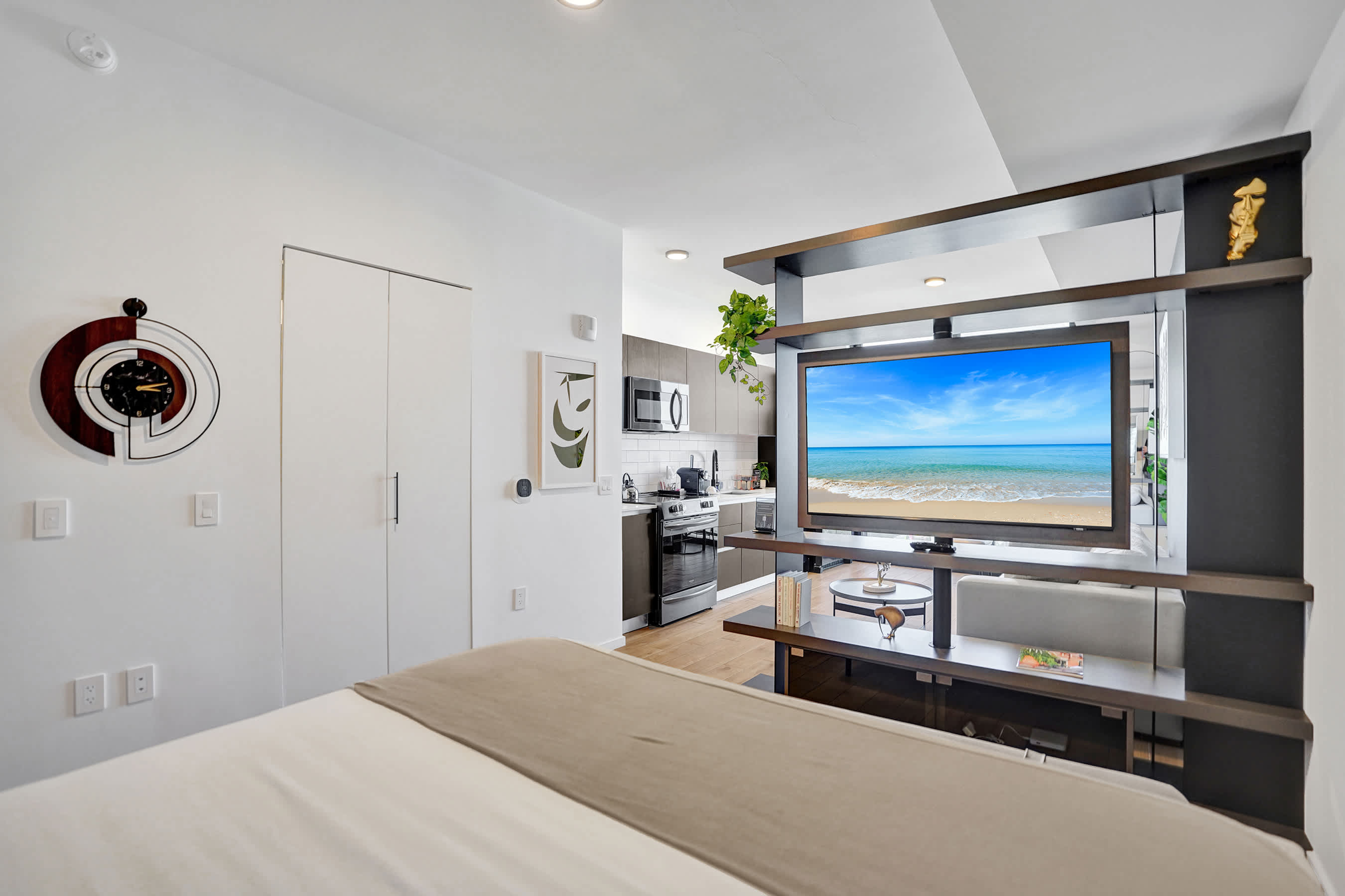 - A plush king bed with hotel-quality linens for restful sleep