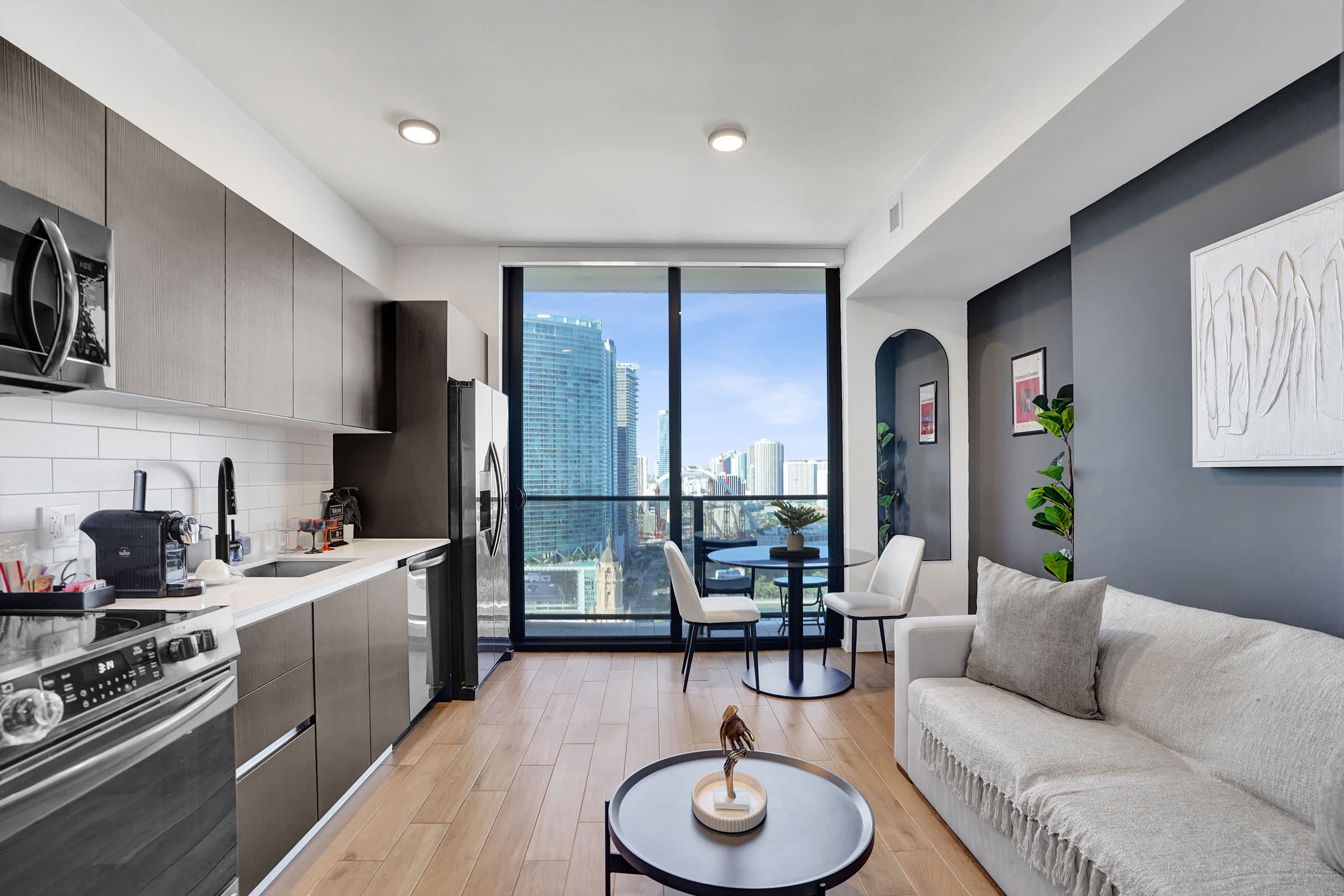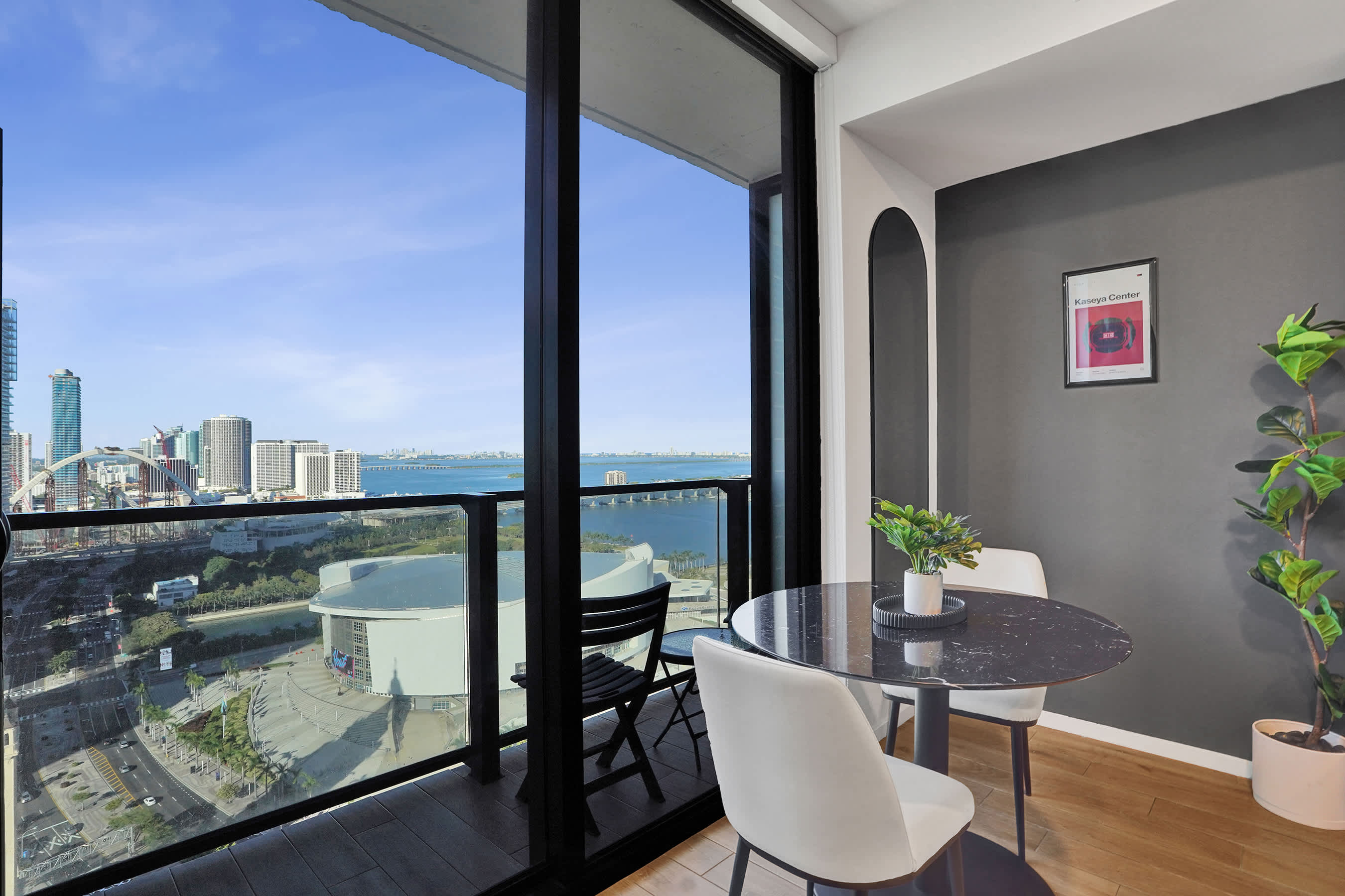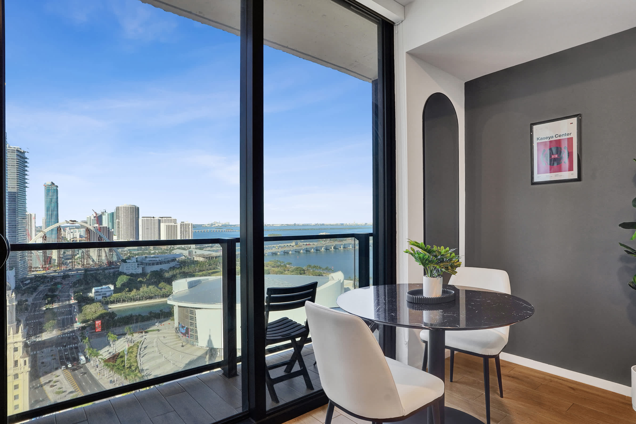 Enjoy breathtaking views of Biscayne Bay and the Downtown skyline from your private balcony—ideal for sunrise coffee or evening cocktails.