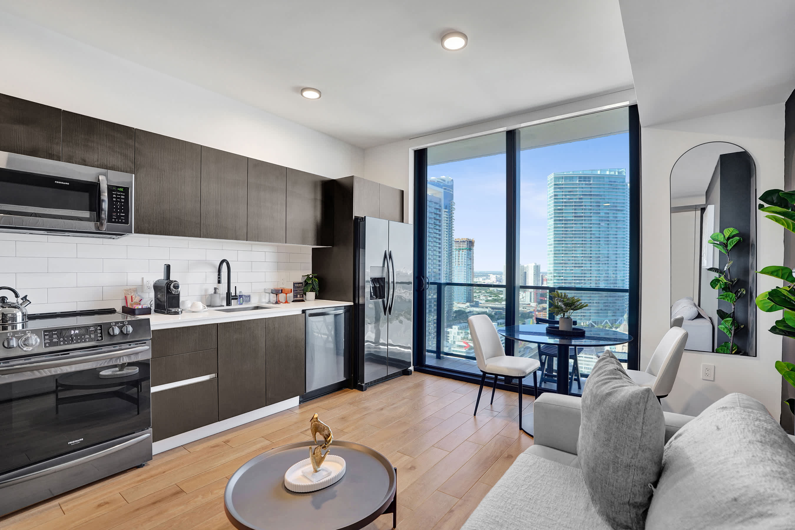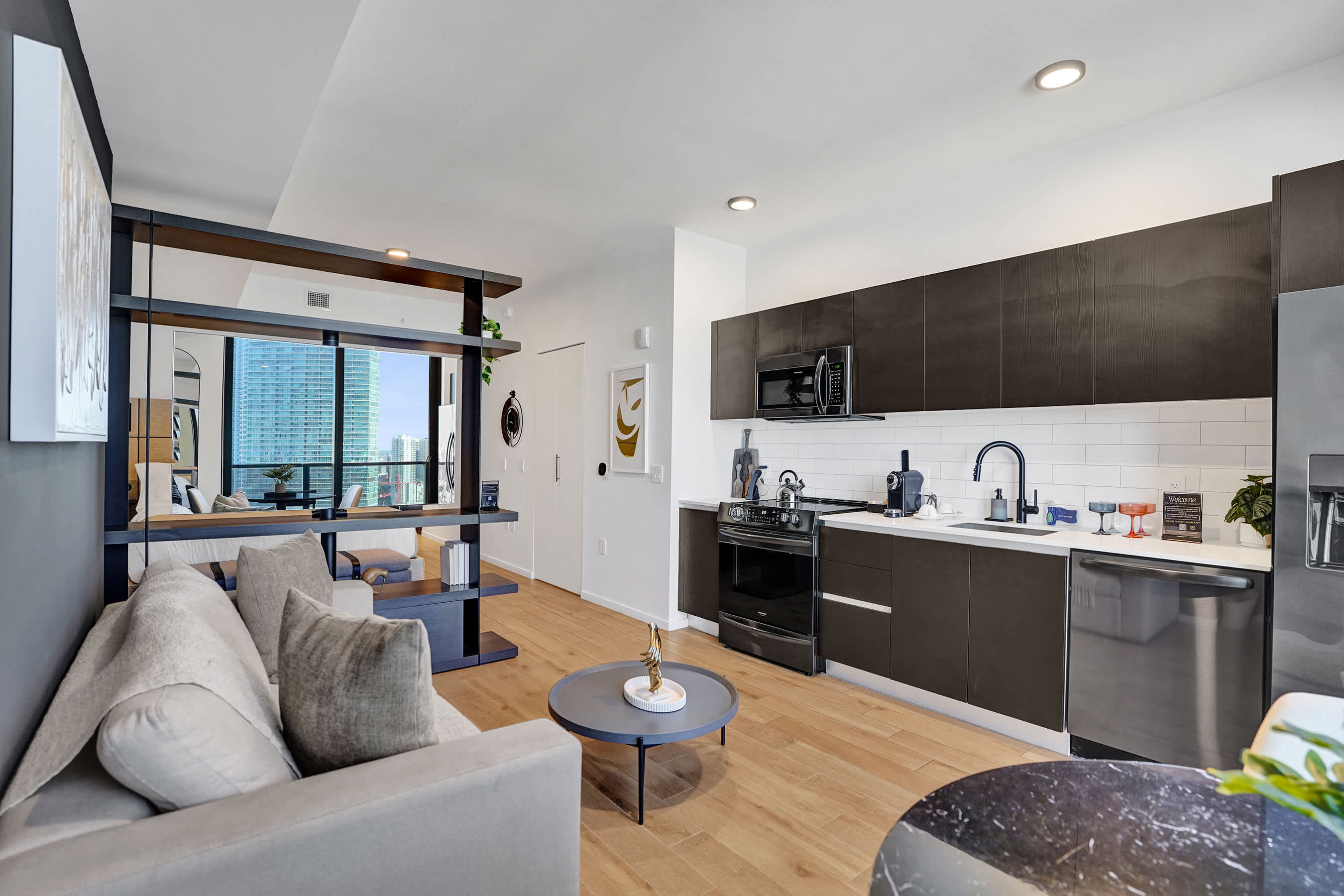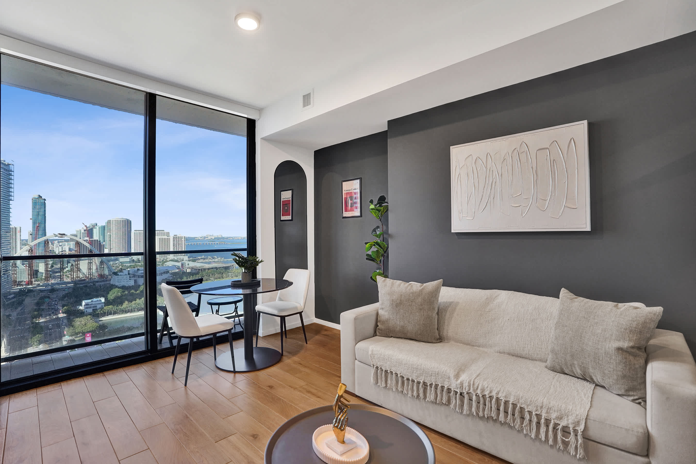 Enjoy breathtaking views of Biscayne Bay and the Downtown skyline from your private balcony—ideal for sunrise coffee or evening cocktails.