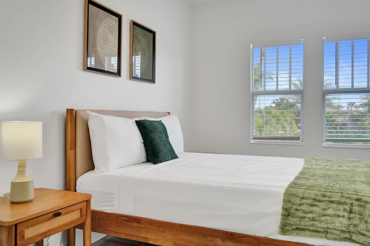 This bright 1-bedroom apartment offers a queen bed, sofa sleeper, Smart TV, and fast WiFi — everything you need for a comfortable South Florida escape. Take a dip in the shared pool, lounge in the covered bar area, or unwind indoors with a movie night. Just minutes from Lake Worth Beach, downtown, and Palm Beach Island.