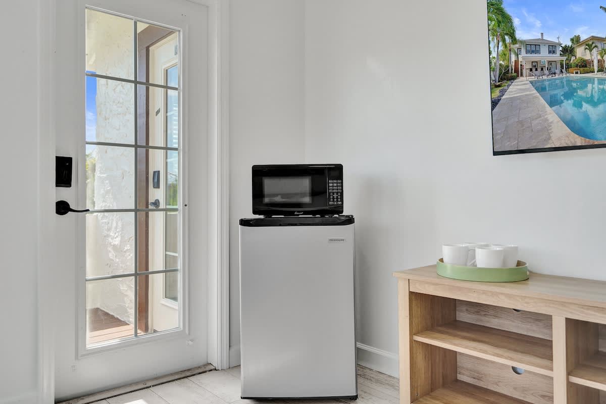 - Mini fridge, microwave, and coffee maker for light snacks and refreshments