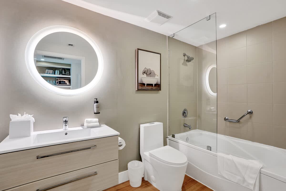 - Full bathroom with shower/tub combo and hotel-quality towels