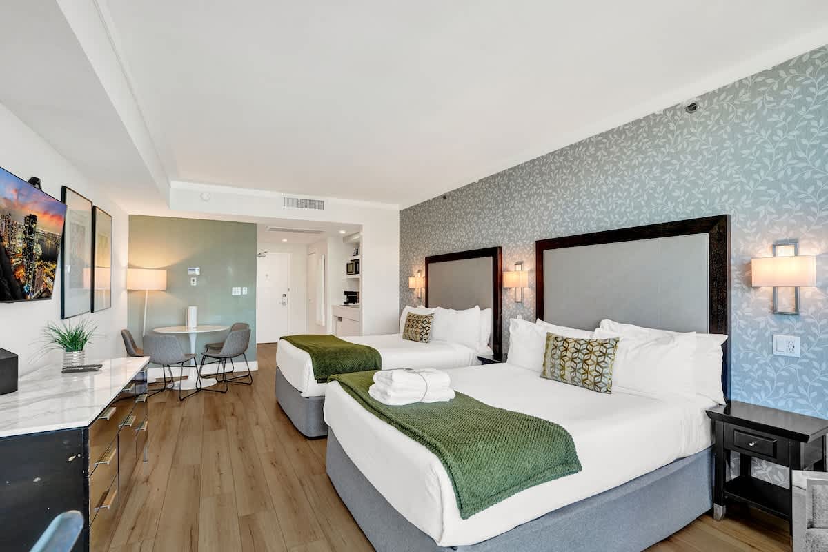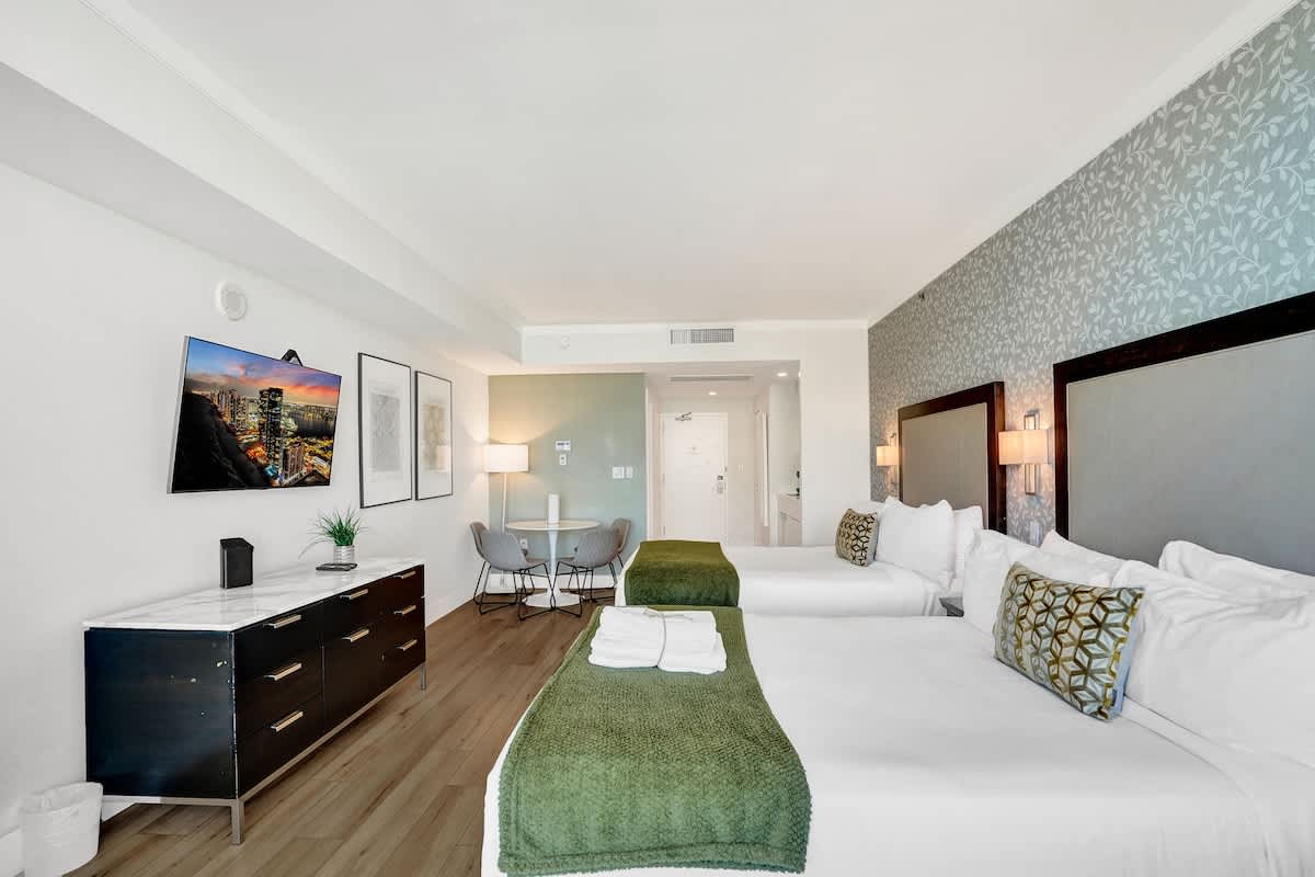- Two plush queen beds with premium linens