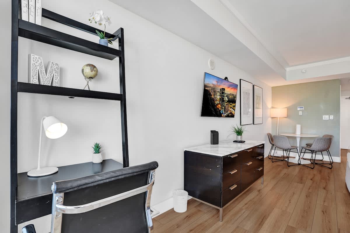 Enjoy comfort and convenience in this 14th-floor studio with breathtaking views. This modern retreat offers two plush queen beds, a full bath, desk, kitchen, Smart TV, and WiFi—ideal for relaxing or remote work. Walk to Coconut Grove’s best dining, shopping, and waterfront spots. Includes one free designated parking space. Perfect for couples, friends, or business travelers seeking a stylish stay in the heart of Miami!