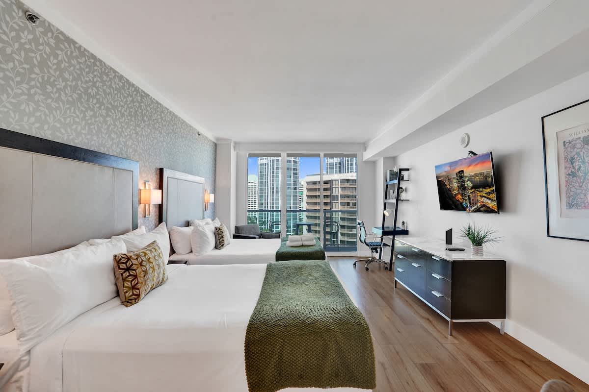 Couples, small families, friends, or business travelers looking for a stylish stay with hotel amenities and unforgettable views in the heart of Miami.