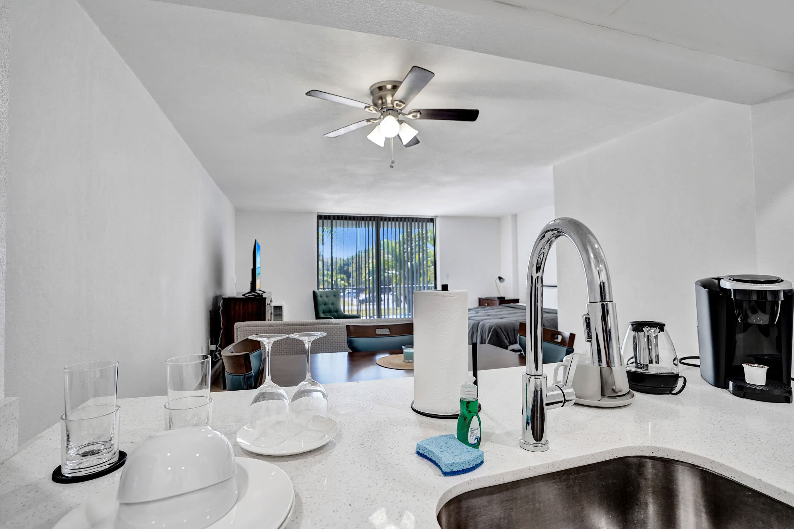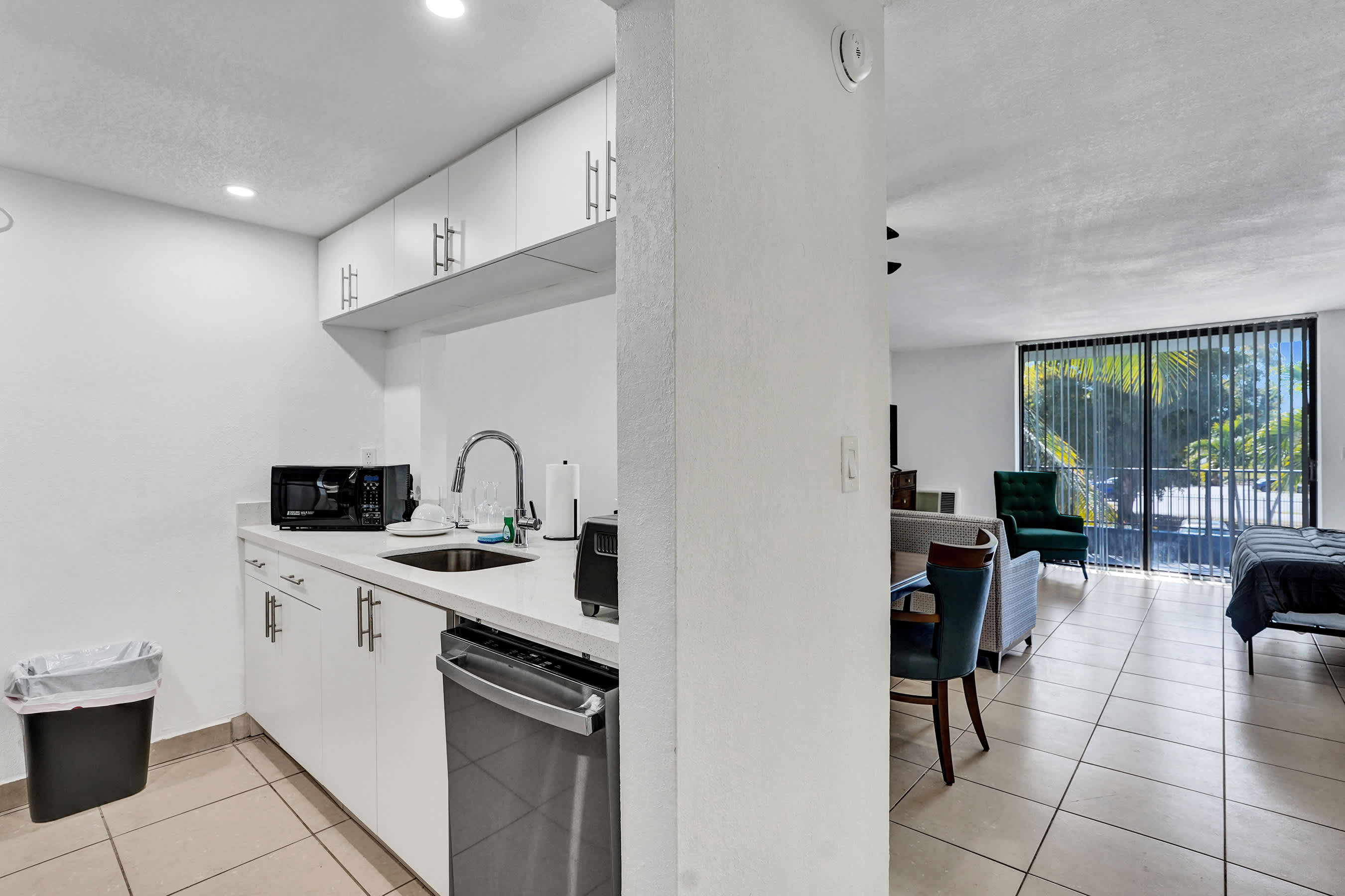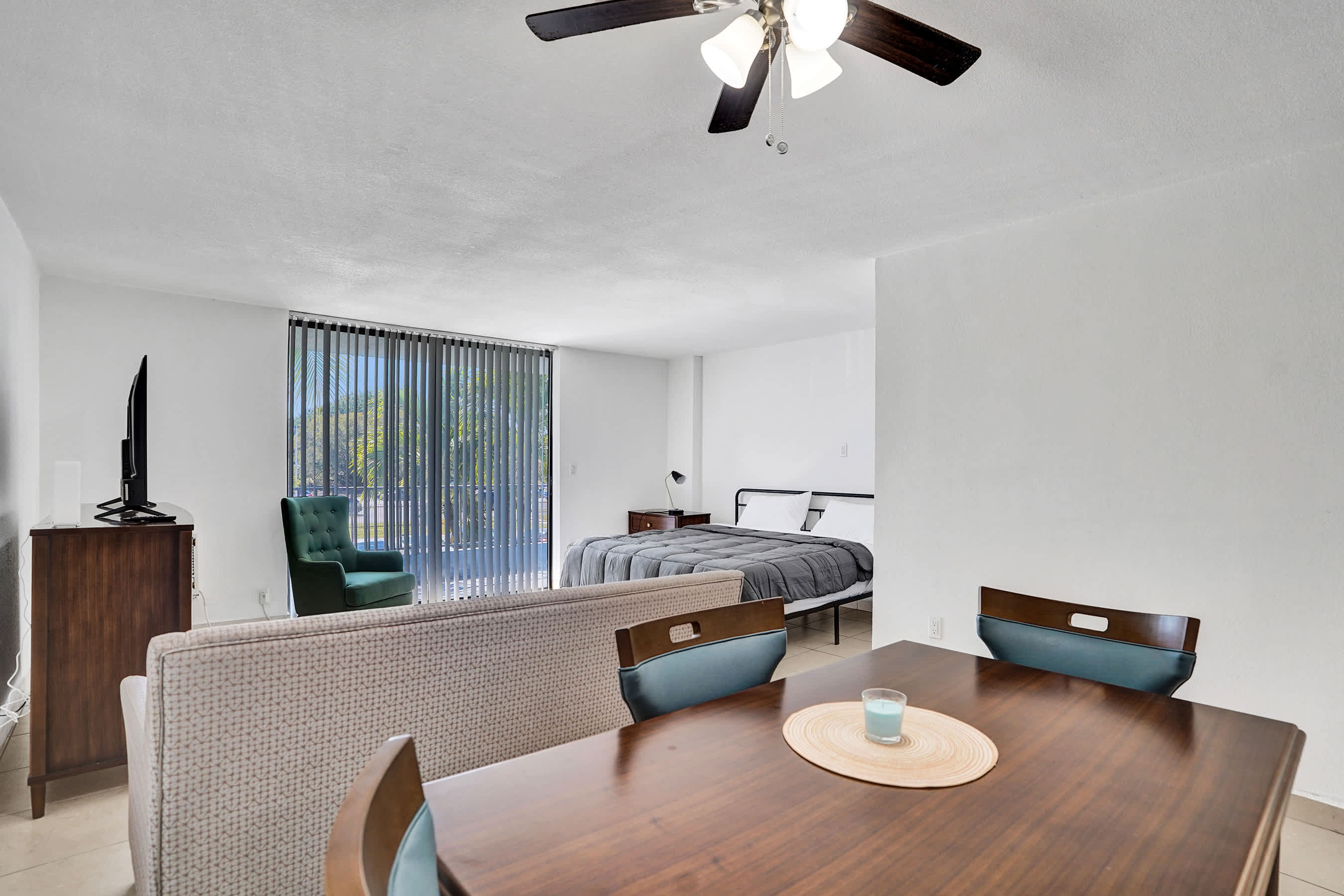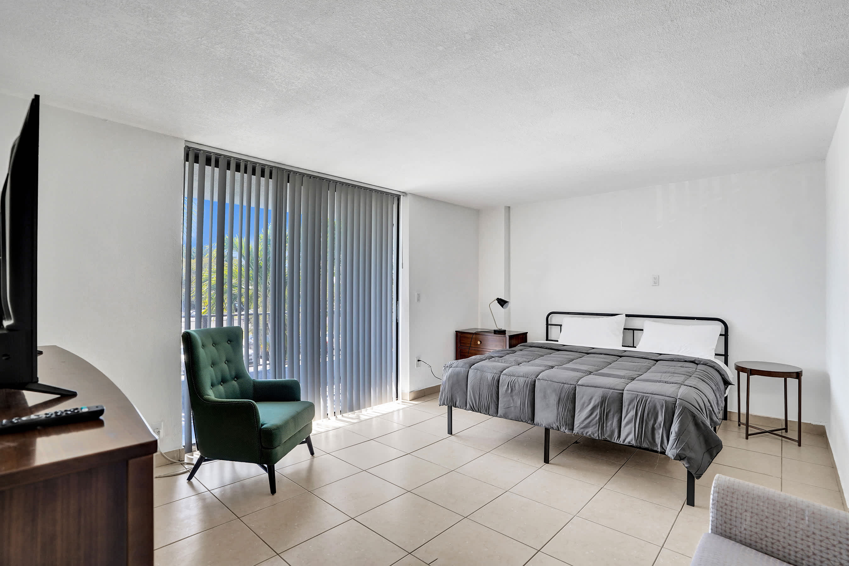 Enjoy a comfortable Miami stay in this modern studio featuring a plush king bed, soaking tub, and ceiling fan for added comfort. Perfect for couples or solo travelers looking for a quiet, convenient location with easy access to major highways and nearby attractions.