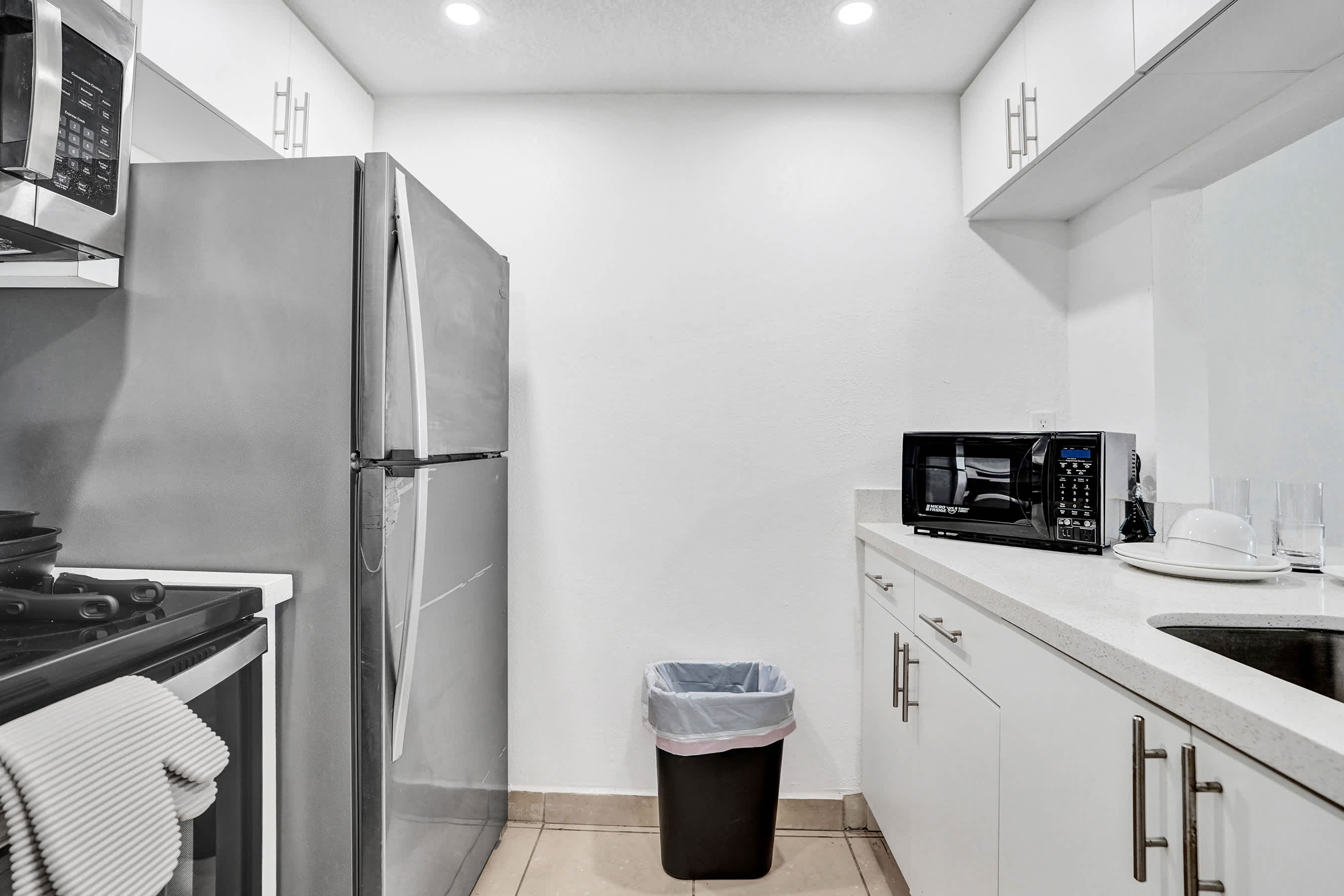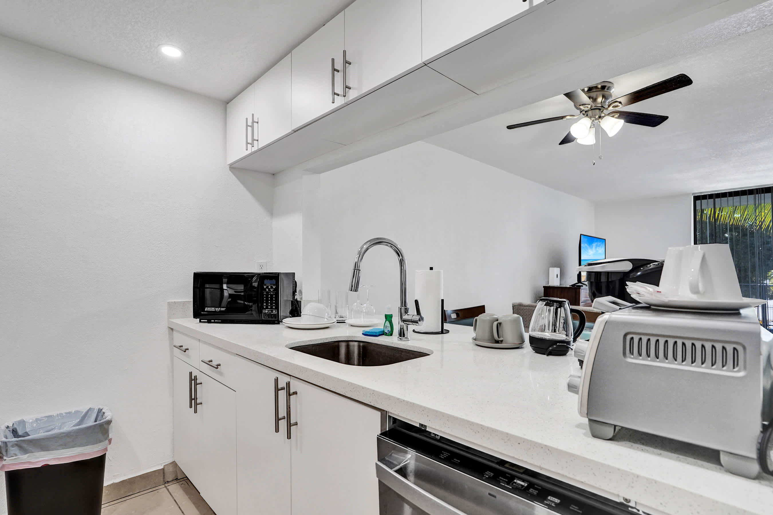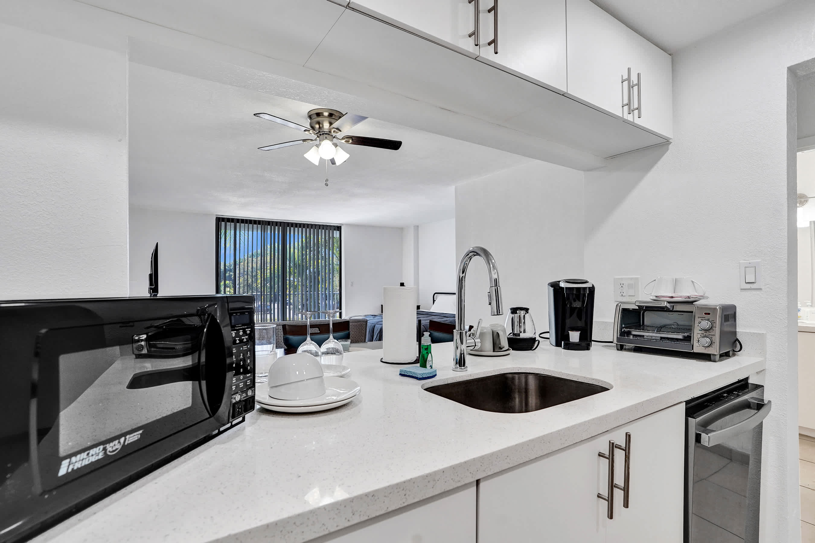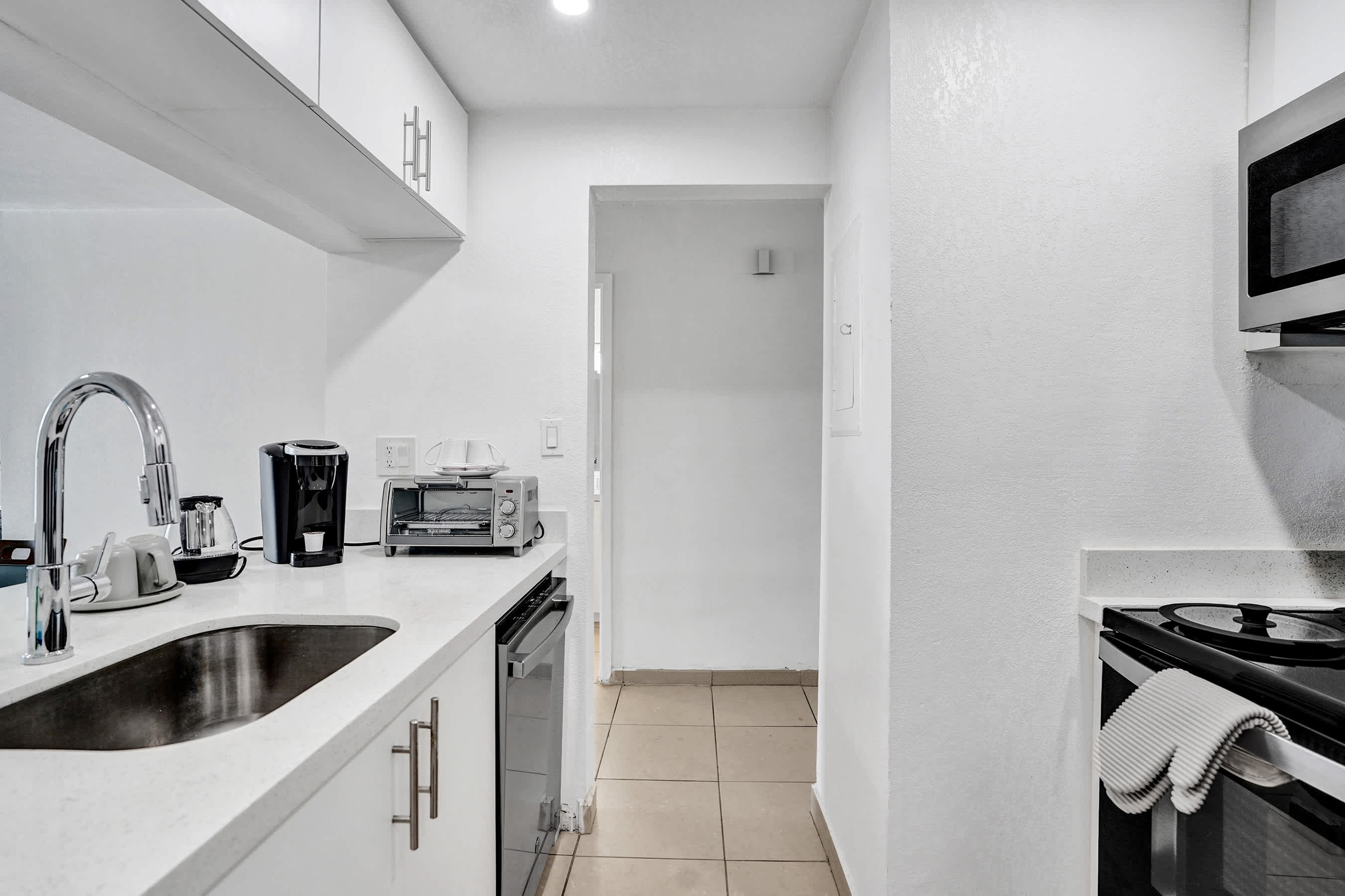 Enjoy a comfortable Miami stay in this modern studio featuring a plush king bed, soaking tub, and ceiling fan for added comfort. Perfect for couples or solo travelers looking for a quiet, convenient location with easy access to major highways and nearby attractions.