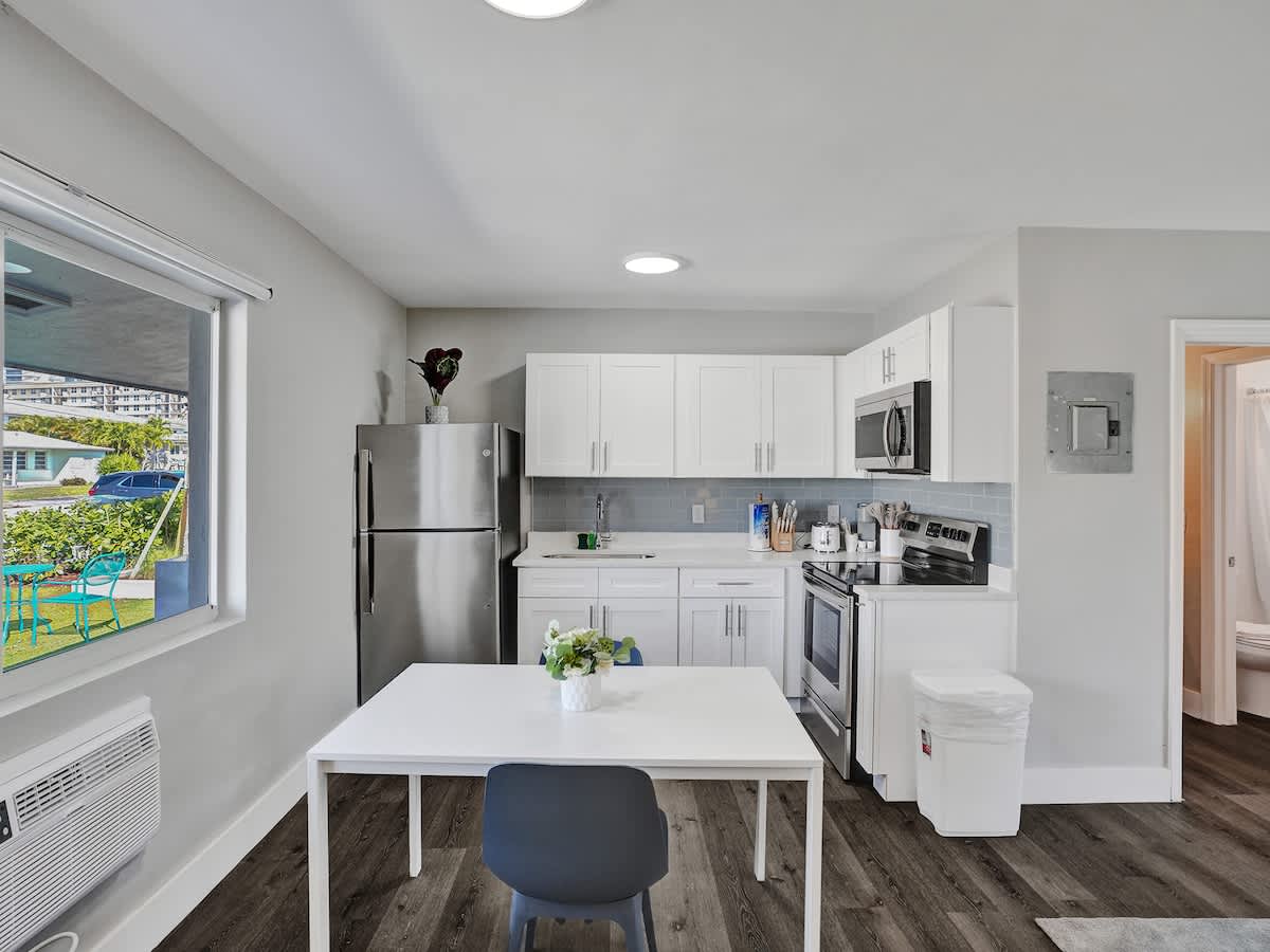 Welcome to Pelican Cove, your cozy studio apartment with full kitchen and private back patio nestled in the heart of Pompano Beach! Perfect for solo adventurers or couples seeking a tranquil coastal getaway, this charming space offers comfort and convenience. Venture out to discover Pompano Beach, just a short stroll away and explore the vibrant dining scene nearby. Whether you’re seeking relaxation or adventure, this charming studio provides the perfect home base for your Pompano Beach escape.