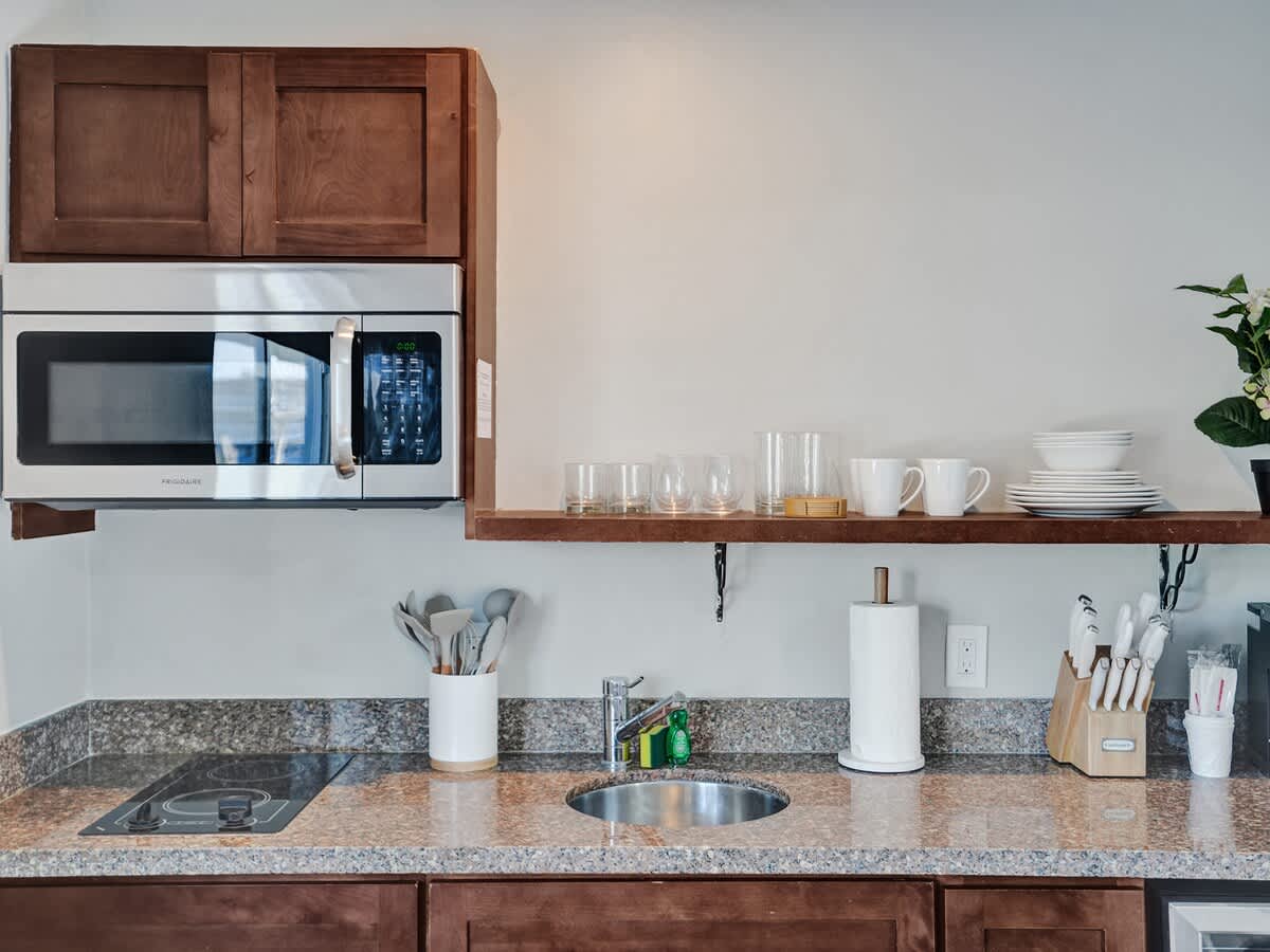 - Kitchenette: Equipped with essential appliances, including a coffee maker, toaster, microwave, and refrigerator, allowing you to prepare simple meals and beverages during your stay.