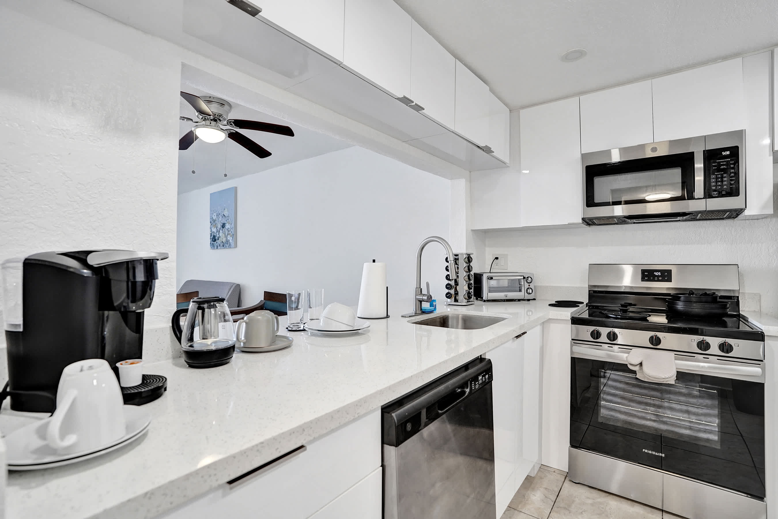 Cozy and private 1BR unit in Miami Gardens, perfect for short or extended stays. Features a full bed, ceiling fan, bathtub, and a fully equipped kitchenette with induction stove, oven, microwave, dishwasher, small fridge, and Keurig. Located near Hard Rock Stadium with easy access to I-95, shopping, and dining. Ideal for event guests, business travelers, or anyone exploring South Florida.