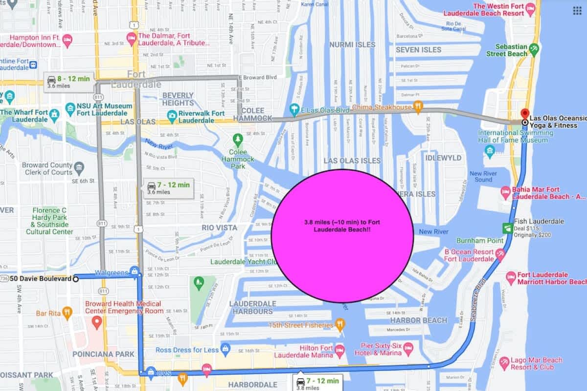 ~5 minutes from Las Olas Boulevard