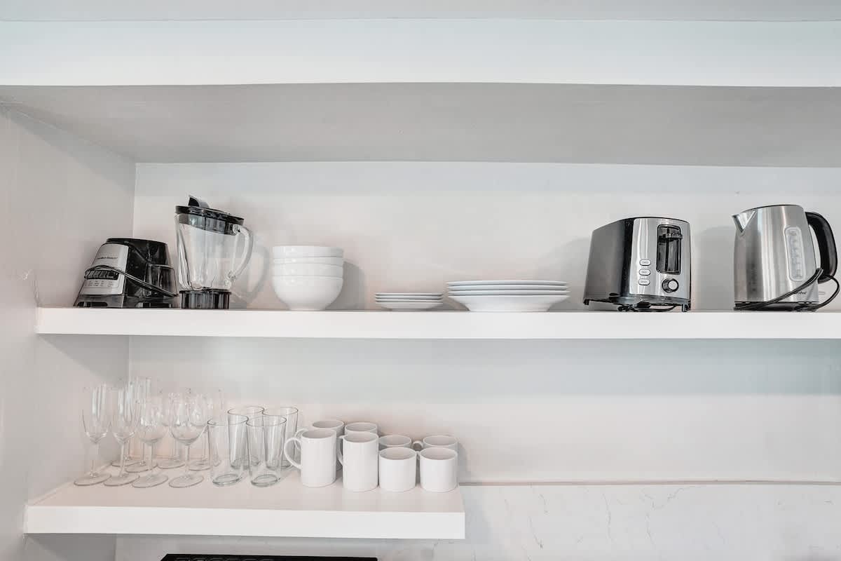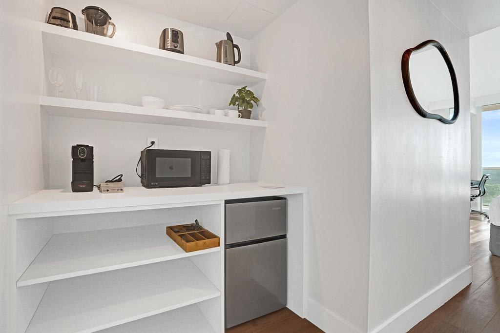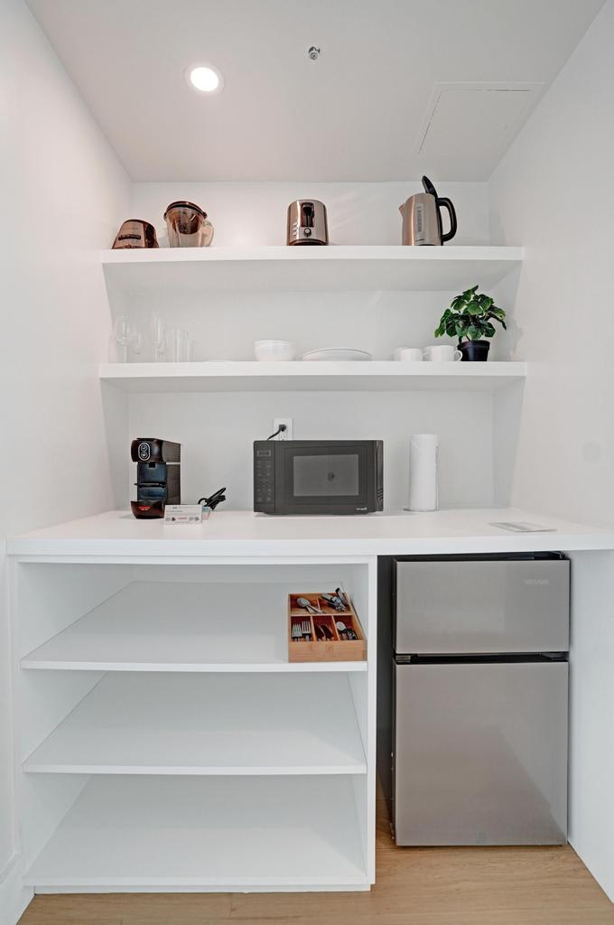 – Kitchenette with fridge, microwave, sink, coffee maker, and essentials