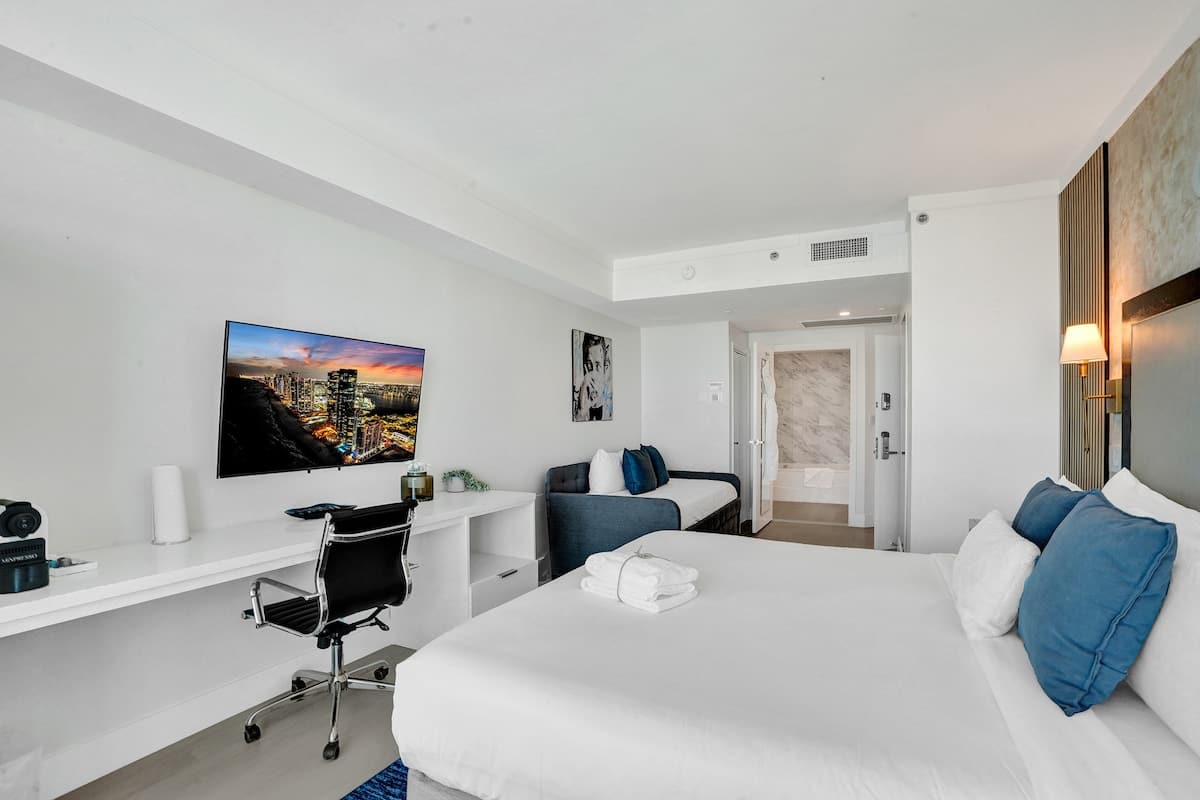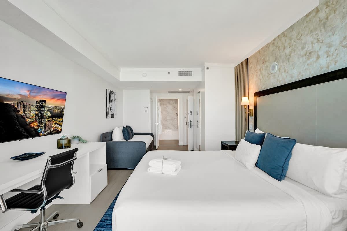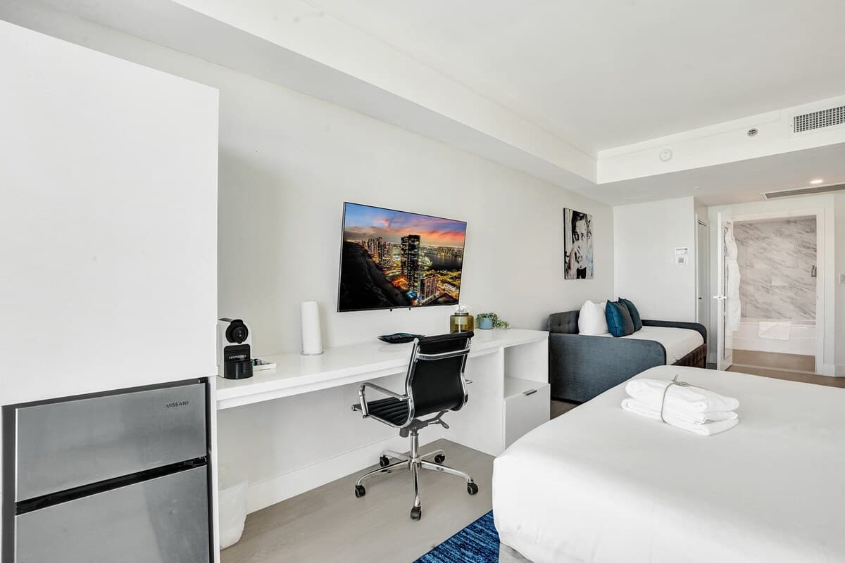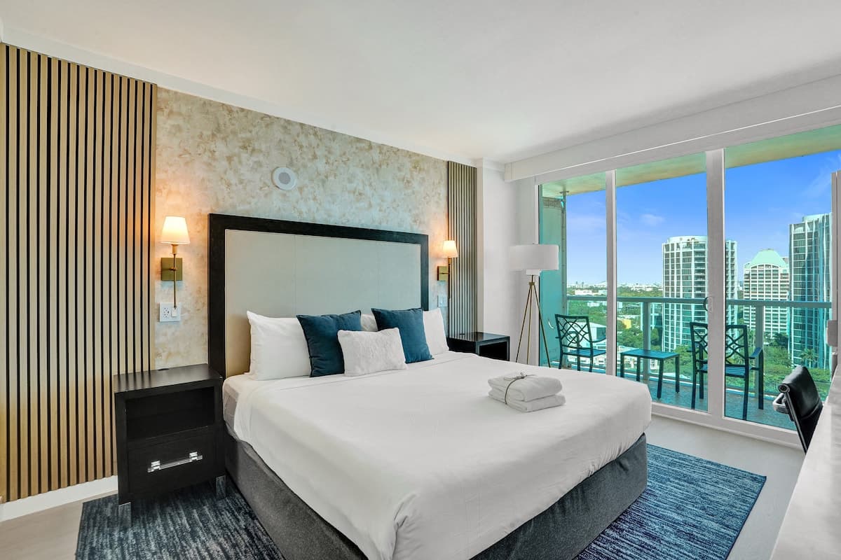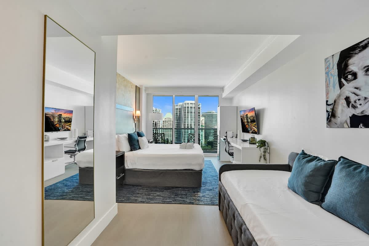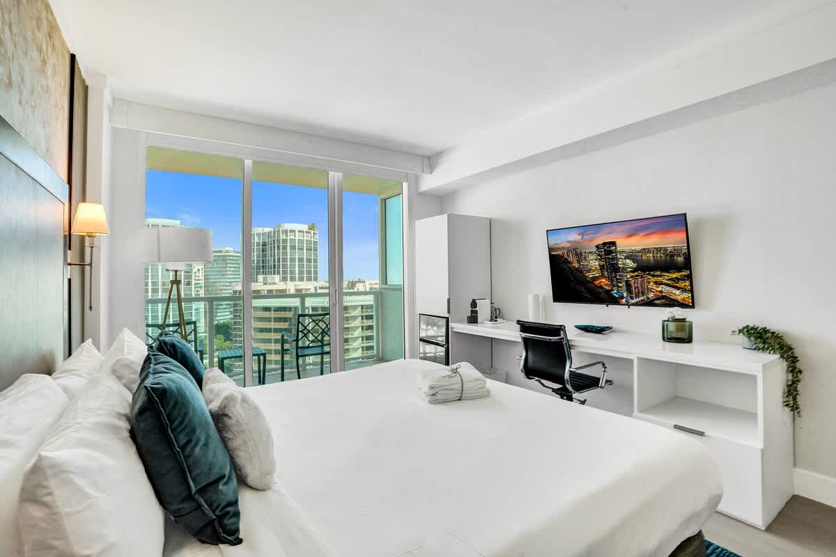 - Couples, small families, or business guests looking for a stylish studio with stunning views and access to top amenities in the heart of Miami.