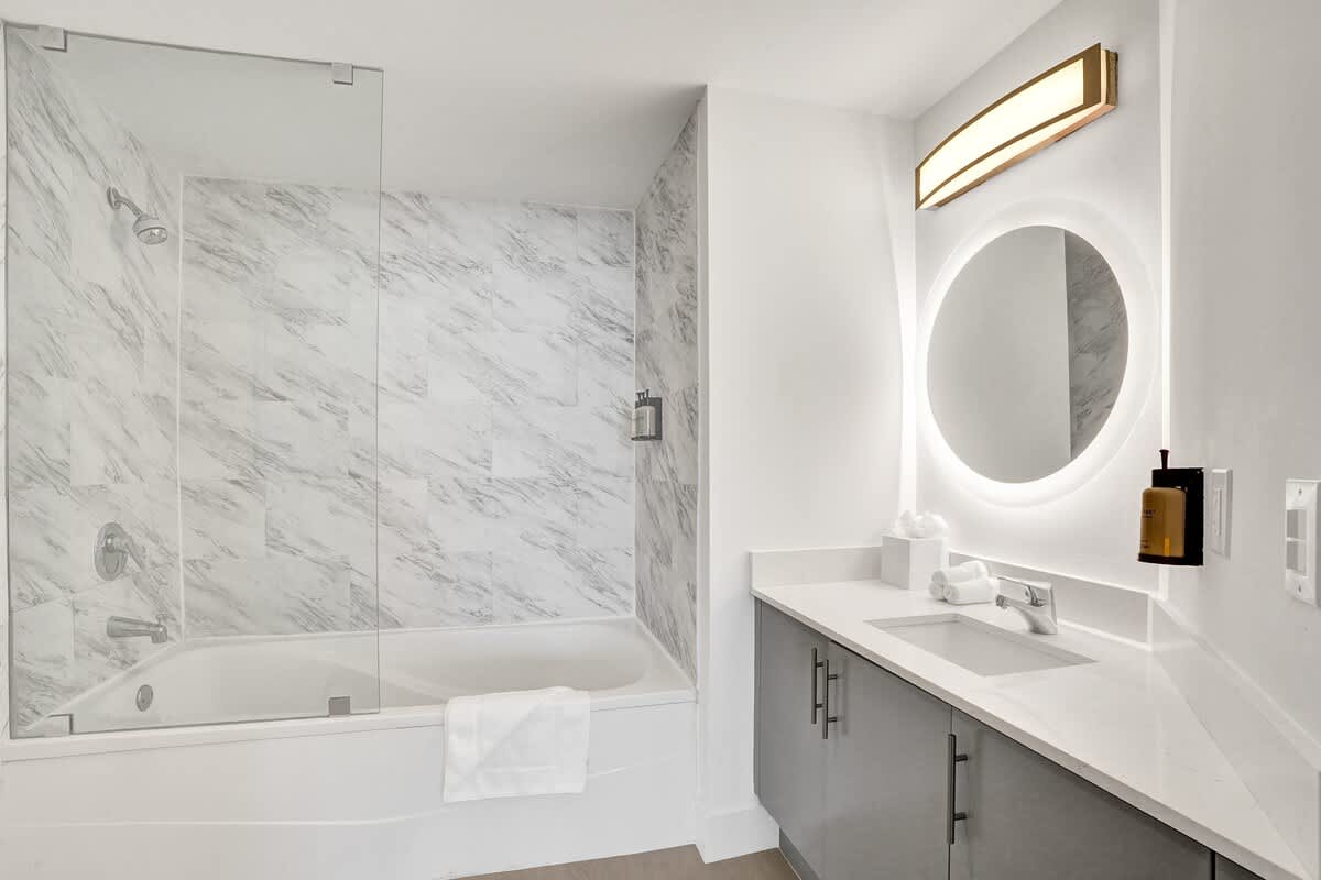 - Full bathroom with shower/tub combo and hotel-quality towels