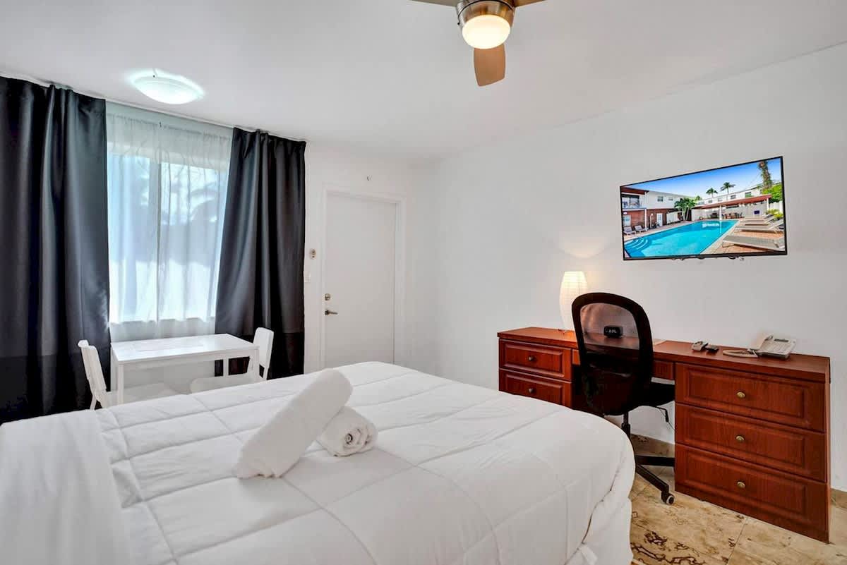 Welcome to Waves, a 20-unit complex in the heart of Pompano Beach, Florida. This studio apartment has a spacious living area that has a double bed for 2 guests, a desk workspace, and a gated pool on property for you to lounge under the sun. We are within walking distance from the beach and ample restaurants, nightlife and attractions to choose from. This apartment sleeps 4 guests, and is the perfect getaway for friends, family, or a work trip!